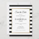 Mit einem klassischen Schwarz-Weiß-Streifen-Hintergrund bietet diese elegante Geburtstagskarte Save the Date eine elegante Imitat-Goldfolie, die Ihr Set für Save the Date Details in schicker Typografie umrahmt. Entwickelt von Thisisnotme©