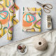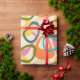Dieses Verpackungspapier hat ein modernes Design von "deformierten" Kreisen in Retrofarben, die sich überlagern und sich im Design wiederholen.