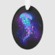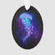 Grande méduse bleue, artistiquement dessinée, brillante, brillante, avec de longues tentacules sur arrière - plan noir avec bioluminescence violette. Méduse brillante.