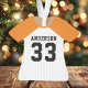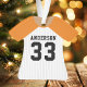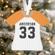 Célébrez votre étoile de baseball avec cet ornement de maillot à rayures orange et blanc personnalisé. Parfait pour commémorer une saison spéciale, un joueur ou une équipe. Customisez-le avec un nom et un numéro pour créer une conservation unique.
