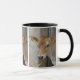 Bilder einer jungen Jersey-Kuh auf einer Schwarzweiss-Tasse.