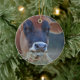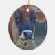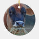 Nahes hohes Foto einer Jerseykuh, die etwas Heu isst