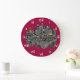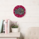 Ich nahm dieses Foto einer handgemachten, handgemalten armenischen Keramikplatte mit einem bunten Bild der alten Stadt von Jerusalem. Es gibt einen Bordeauxhintergrund und die römischen Ziffern sind weiß.