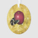 Représentant Adam et le Jardin d'Eden, l'arrière - plan d'or de cet ornement met en valeur une pomme rouge et un serpent noir et blanc. Reverse est doré avec un design de flocon de neige géométrique blanc.