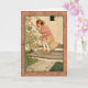 Schöner Druck eines Mädchens, das ihre Veranda vor sich fegt. Diese Karte ist ein besonderer Geburtstagsgruß, der an einen wunderbaren Freund geschickt wird. Geburtstagsgrüße und Schriften finden sich im Inneren.