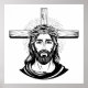Portrait of Jesus Christ, the Son of God in a crown of thorns on his head with a cross in the background, a symbol of Christianity