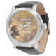 Uhr, Vintage Männeruhr mit schwarzem Lederarmband