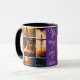 Jesus Collage Tasse - Dies ist eine bunte Tasse mit goldenen Farbtönen, Blues, lila und Creme. Der Schriftart auf der Tasse ist "König der Könige & Herrscher".
