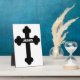 JESUS IM WEISSEN TEXT AUF EINEM SCHWARZEN KREUZ