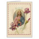 Schönes Vintage-Bild von Jesus, das den Heiligen Eucharist und Chalice mit einem Blumenbild gerahmt hält.