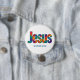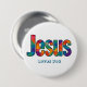 Button with Beautiful colorful geometric design of the name of "Jesus" loves you (personalize message or scripture or name). Great gift for Christians who love the Lord and are proud to be His. This button is fun to use for religious celebrations, events and parties such as baptisms and summer BBQ's.