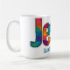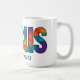 Coffee mug with Beautiful colorful geometric design of the name of "Jesus" loves you (personalize message or scripture or name). Great gift for Christians who love the Lord and are proud to be His. This mug is fun to give for religious celebrations, events and parties such as baptisms and summer BBQ's.