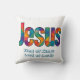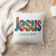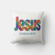 Pillow Beautiful colorful geometric design of the name of "Jesus" loves you (personalize message or scripture or name). Great gift for Christians who love the Lord and are proud to be His. This throw pillow is fun to give for religious celebrations, events and parties such as baptisms and summer BBQ's.