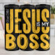 This bold design declares "JESUS IS MY BOSS." "JESUS" is prominent in a distressed yellow, with "IS MY" in smaller text, and "BOSS" in large, outlined yellow letters, conveying a strong statement of personal devotion and submission to Christ.