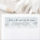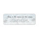 Fallender Schnee Christliche Verse Rücksendeadressen-Aufkleber. "Jesus ist der Grund für die Saison" in schwarzem Drehbuch über die Spitze der hellblauen Adressetiketten mit Schneeflocken. Druckadresse in schwarz mit drei Zeilen.