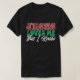 Dieser schwarze T - Shirt hat den Namen "JESUS" oben in einem großen, roten, umrissenen Schriftart mit kleinen weißen Punkten. Unten ist "LIEBEN ME" in einem fett grünen Schriftart geschrieben, und "This I Know" ist am Ende in einem weißen, leicht schrägen Skript-Schriftart. Dieses Design drückt eine Christliche Grundannahme aus.