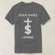 'Jesus Rette, ich verbringe' Sprichwort mit einem Christlichen Kreuz und einem Dollar-Zeichen.