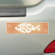 Eine erfrischende und moderne Interpretation von "JESUS" Autoaufkleber, Text in Fischform & fröhlicher orangefarbener Hintergrund.