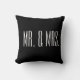 Le jeté de coussin est présenté en noir avec du texte en blanc : M. & Mme.