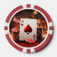 Les puces de poker sont montrées ici avec une carte et des puces photo art imprimé. Customisez cet objet ou achetez tel quel. Image sous licence