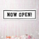 Sagen Sie "jetzt offen" zu den Kunden bei der Eröffnung Ihres Unternehmens. Fett schwarze Formulierung in einem schwarzen Rahmen.
