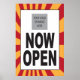 Jetzt kann das Open Schild Plakat für Ihr neues Unternehmen auf ein Sandwich-Board oder einen Soal montiert werden. Ersetzen Sie die Bildplatzierungsgrafik durch Ihr Logo oder Ihren Firmennamen. Die Aufmerksamkeit, die an die Grenze zu Rot und Orange-Sonnenstrahlen kommt, zeichne den Blick potenzieller Kunden.