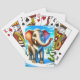 Ces cartes à jouer ont un éléphant de dessin animé sur elles.