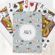 De délicieux sushis japonais, nigiri et maki roulent dans un mignon motif sur un arrière - plan bleu. Modifiez les initiales du monogramme pour customiser.