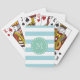 Jeu De Cartes Motif blanc bleu de rayures, monogramme vert en