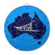 Une simple silhouette blanche d'un traîneau à chiens et de la Croix du Sud superposée sur une carte bleue de l'Australie. Vous pouvez choisir une autre couleur arrière - plan. Qui l'aurait nié ? Il se déplace à l'envers à Oz. Le traîneau à chiens est très populaire en Australie. Au Mont Hotham à Victoria, il y a une grande course chaque année.