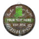 Personnalisez facilement ce panneau de pub irlandais à effet en bois en détresse fait pour ressembler à un vieux baril de bière et de bière verte graphique à boire avec un clou de shamrock vert chanceux avec votre propre texte ou nom pour vos célébrations de la Saint Patrick à boire. Visitez le magasin PADDY_O_DOORS à pour les produits correspondants et plus de cadeaux de jour de St Pat. CLIQUEZ sur PERSONNALISER pour ajuster la taille du texte ou la police.