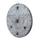 Ce panneau de dard est un regard texturisé blanc avec une toile d'araignée noire qui a une araignée de veuve noire avec les taches rouges de sablier et des araignées de veuve plus noire autour des bords.