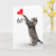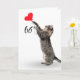 Un chat en forme de tabby gris avec un ballon rouge pour 66e anniversaire sur un arrière - plan blanc.
