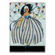 Vibrant, classe, design artistique Art Déco, belle jeune fille avec casquette noir et magnifique robe blanche rayée bleue, arc et des boules ornementales colorées.
