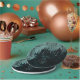 Opt for a striking, glitz and glam look by using the pieces in this wedding suite as shown, with jewels cascading off the diamond-encrusted palm leaves or delete the jewel layers for a slightly more conservative look. This set features leaves in shimmering pastel teal against a darker teal, textured background. The wedding paper plate shown here has a border of sparkling leaves, a personal 'Thank You' message and the bride and groom's names and wedding date. Easily enter your details using the provided template. View the collection link on this page to see all of the matching items in this beautiful set or search ID830 to see additional color options for this design.
