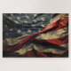 Jigsaw Puzzle patriotische amerikanische Fahne in schwingendem Stoffdesign mit Leinwand Material Textur Effekt.