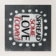 "Spread some Liebe Today" ist ein niedliches Textdesign mit einer weißen Akzent-Form, umgeben von niedlichen weißen Polka-Punkten.