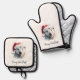 Bring warmth and whimsy to your holiday baking with this Jingle Bear Joy oven mitt and pot holder set! Featuring a lovable watercolor polar bear in a Santa hat, this festive kitchen duo adds charm to every cookie batch and Christmas dinner prep. Personalize with a name or phrase like "Baking with the Bakers," "Beary Hot Stuff," or "Merry Kitchen Magic" for a delightful custom touch. Both stylish and practical, this set makes a wonderful gift for holiday hosts, baking enthusiasts, or anyone who loves cooking with a side of Christmas cheer.