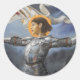 Jeanne d'Arc ikonisches Bild in der Schlacht, mit Rüstung tragen und Schwert und Banner halten.