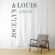Moderne Hochzeitskulisse mit minimalistischem Schwarz-Weiß-Design mit Ihren Namen in einem großen Schriftart entlang der links Seite und oben. Dieses Design ist einfach genug für eine feierliche Hochzeit, aber macht eine kühne Aussage.