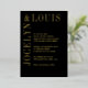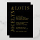 Moderne Schwarz-Gold-Hochzeitseinladung mit minimalistischem Design, mit Ihren Namen in einem großen Schriftart entlang der links Seite und oben. Ihre Namen sind in echter Folie und alle Texte auf der Vorderseite können im Designbearbeitungstool in Folie geändert werden. Die Rückseite hat Ihr Monogramm. Dieses Design ist einfach genug für eine feierliche Hochzeit, aber macht eine kühne Aussage.