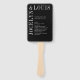 Moderner Hochzeitshandfan in minimalistischem Schwarz-Design mit Ihren Namen in einem großen Schriftart entlang der links Seite und oben. Dieses Design ist einfach genug für eine feierliche Hochzeit, aber macht eine kühne Aussage.