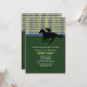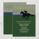 Eine sportliche Einladung, die perfekt für ein Kentucky Derby Party oder für jede Pferderennveranstaltung ist. Die Karte weist oben ein gelbes, weißes und blaues Muster der Raute auf, ein grünes, solides Unterteil und ein Jockey der Silhouette auf einem Pferd in Schwarz.Die Einladung ist leicht anzupassen mit Ihrem Wortlaut, Schriftart, Schriftart Farbe und Auswahl von sechs Papiertypen.