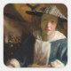 Johannes Vermeer - Mädchen mit Flute Quadratischer Aufkleber