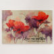 Ein wunderschönes Christliches Puzzle mit inspirierender Zitatskriptur zeigt ein einfaches, elegantes Blumendesign mit zwei roten Blume und einem lila abstrakten Hintergrund. Es zeigt einen ermutigenden Bibelverse Johannes 15:12, in den Worten Jesu: "Liebe einander, wie ich dich geliebt habe."