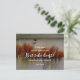 Christliche Schrift-Postkarte mit Inspiration zeigt eine naturfarbene Malerei mit einem Sumpf mit blauem Wasser und Schilf. Es zeigt einen Teil eines ermutigenden Bibelverses John 16:33, in den Worten von Jesus, "In dieser Welt wirst du Schwierigkeiten haben. Aber Herz! Ich habe die Welt überwunden." Der Gruß, das Gebet kann für eine handgeschriebene Nachricht personalisiert oder gelöscht werden.
