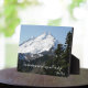 Hinged Foto-Plakette mit einem landschaftlichen, landschaftlich geprägten Bild des schneebedeckten Mount Baker, einem hohen Berggipfel in den Nordkaskaden des Pazifiks im Nordwesten, zusammen mit einem inspirierend Zitat des Naturisten John Muir, das lautet: "Die Berge rufen an und ich muss gehen."