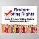 Der John R. Lewis Voting Rights Advancement Act wurde sowohl im Senat als auch im Repräsentantenhaus für 2024 wieder eingeführt. Er zielt darauf ab, die Bestimmungen des Stimmrechtsgesetzes von 1965 wiederherzustellen, wonach einige Staaten Änderungen ihrer Stimmrechtsgesetze mit der bundesstaatlichen Regierung vorab klären müssen, bevor sie sie als Staat-Gesetz erlassen. Dies ist eine wichtige Gesetzgebung, um die Fähigkeit aller Wähler zu erhalten, ihr verfassungsmäßiges Wahlrecht ohne ungerechte Beschränkungen auszuüben. Jüngste Initiativen des Staat, die darauf abzielen, die Wahlzeiten und die Wahlorte umzuverteilen, die Identifikation von Fotos zu verlangen, die frühzeitige Abstimmung und die Abstimmung per Post zu begrenzen, haben zur Folge, dass die Wählerstimmen insbesondere unter den Wählern von Minderheiten unterdrückt werden. Dieses Gesetz wurde nach dem georgischen Repräsentanten John Lewis benannt, einem frühen zivilen Aktivisten und Kongressabgeordneten.
