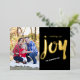Diese moderne Urlaubskarte verfügt über einen Schriftart mit Pinselskripten in Goldfolie. Laden Sie Ihr eigenes Foto hoch, um dieses Design zu personalisieren. Vertikale Bilder funktionieren am besten.