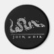 Join, oder Die ist ein berühmter politischer Cartoon von Benjamin Franklin und erstmals in seiner Pennsylvania Gazette am 9. Mai 1754 veröffentlicht. Der Cartoon erschien zusammen mit Franklins Redaktion über den "unvereinigten Staat" der Kolonien und half ihm, seine Aussage über die Bedeutung der kolonialen Einheit zu machen. Während dieser Zeit gab es einen Aberglauben, dass eine Schlange, die in Stücke geschnitten worden war, wieder zum Leben erweckt würde, wenn die Stücke vor Sonnenuntergang zusammengesetzt würden. (Wikipedia)